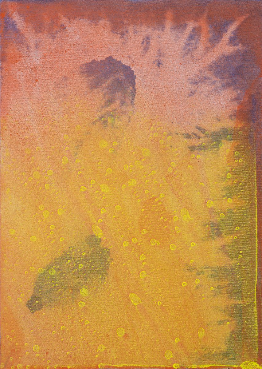 VIVID_pigment, medijum i uticaj energije sunčeve svetlosti i energije vode na platnu, 70x50cm, 2024.